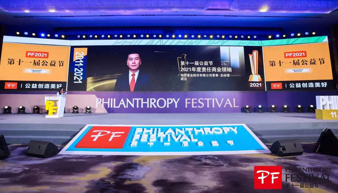 2022年1月13日至14日,第十一届公益节在上海举行。电建地产·尊龙置业获选“2021年度企业社会责任行业典范奖”;电建地产·尊龙置业董事、总经理胡泊获评“2021年度责任商业领袖”。