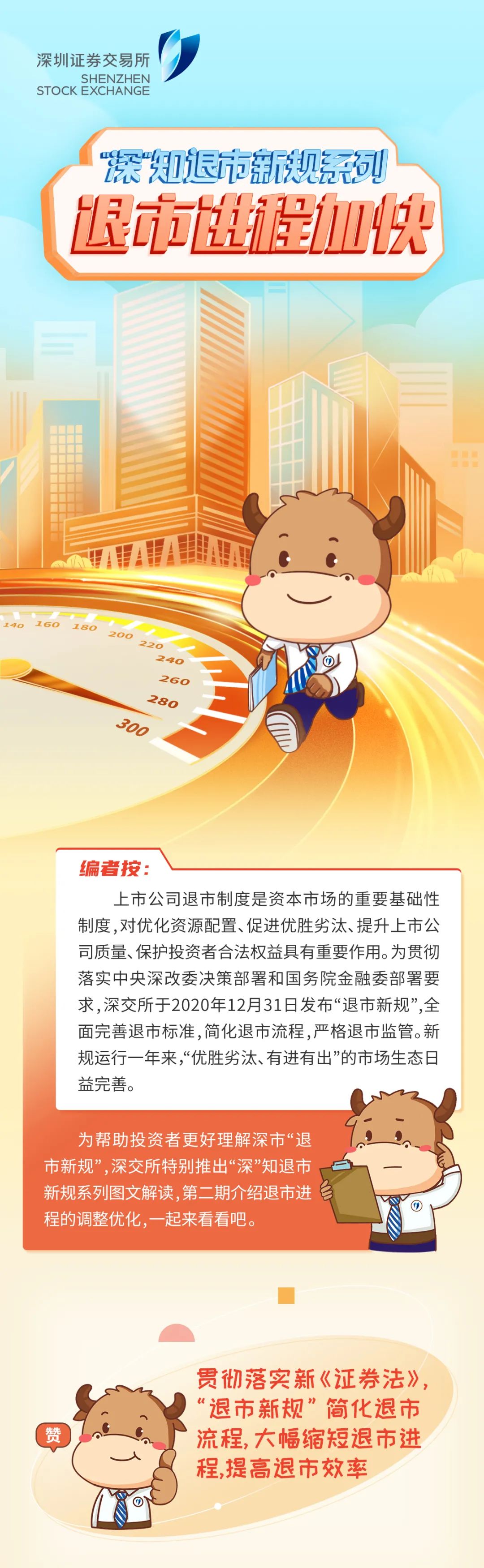 为帮助投资者更好理解深市“退市新规”,深交所特别推出“深”知退市新规系列图文解读,第二期介绍退市进程的调整优化,一起来看看吧。