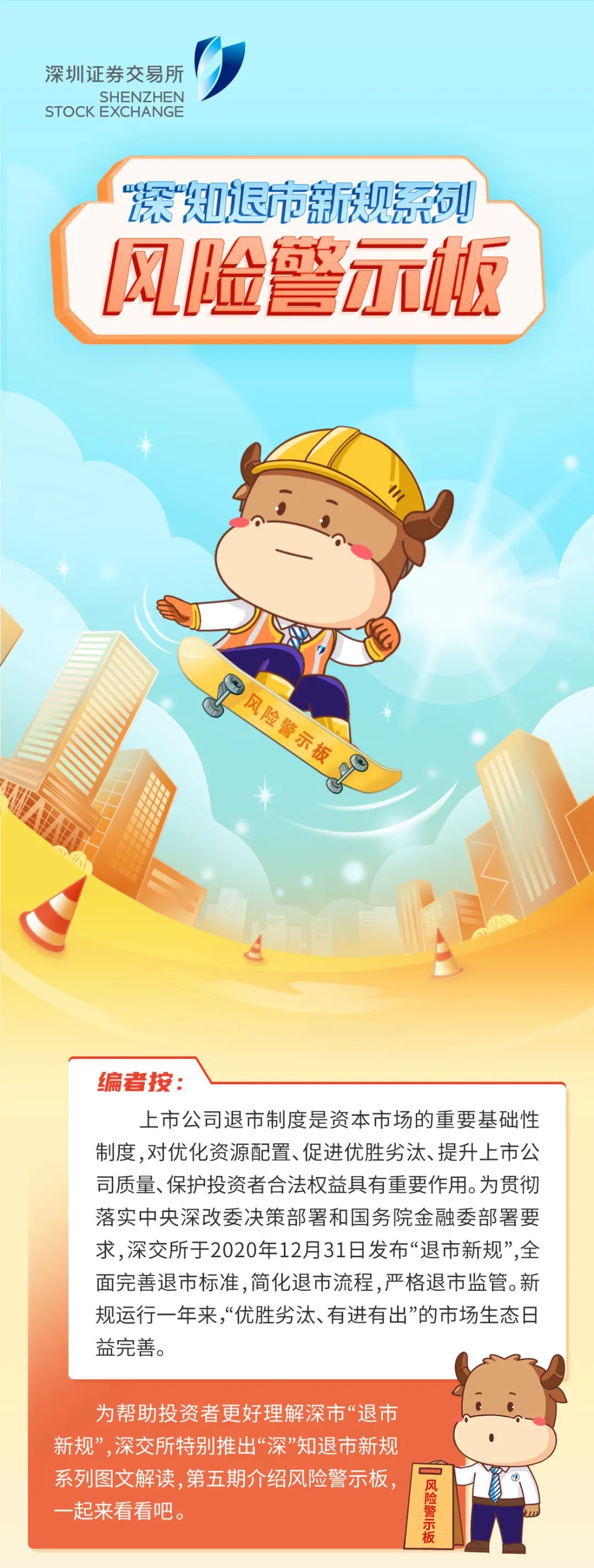 为帮助投资者更好理解深市“退市新规”,深交所特别推出“深”知退市新规系列图文解读,第五期介绍风险警示板有关规定,一起来看看吧。