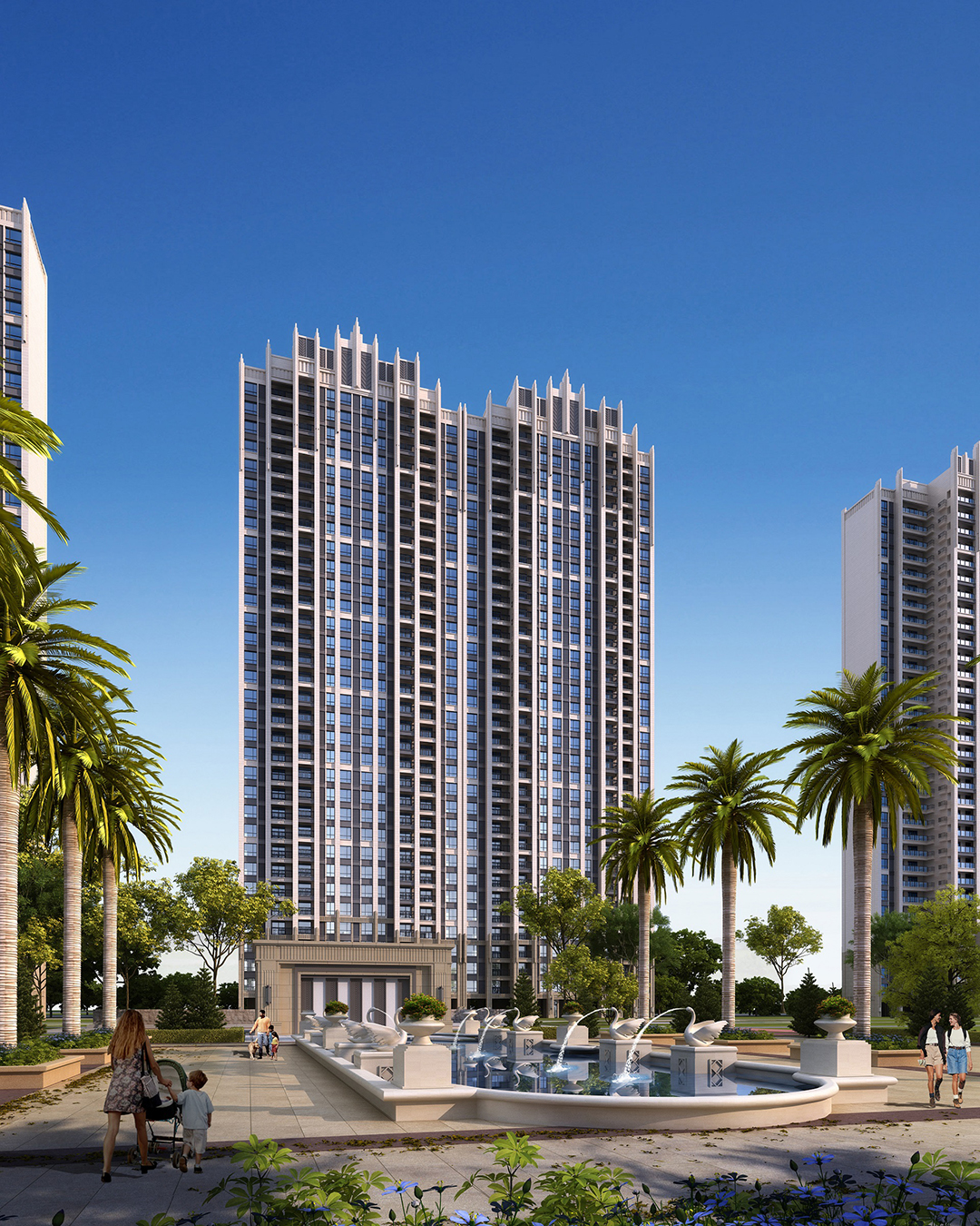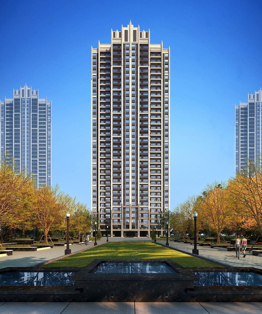 项目建筑立面采用现代式风格,造型简约大气。在景观园林打造上,采用T“型对称式景观轴设计,并通过三大阔景中央园林、社区中央园林、组团景观、多功能活动区及透景观通廊,打造”移步异景的尊贵归家体验,以及宜居写意生活。项目内还配有全龄运动设施场所、近2000方的幼儿园及临街商业,满足住户所有生活所需。