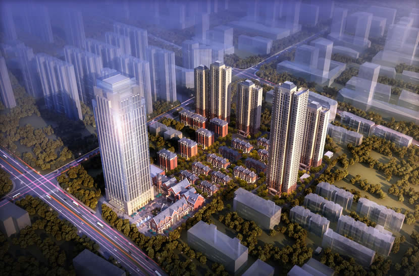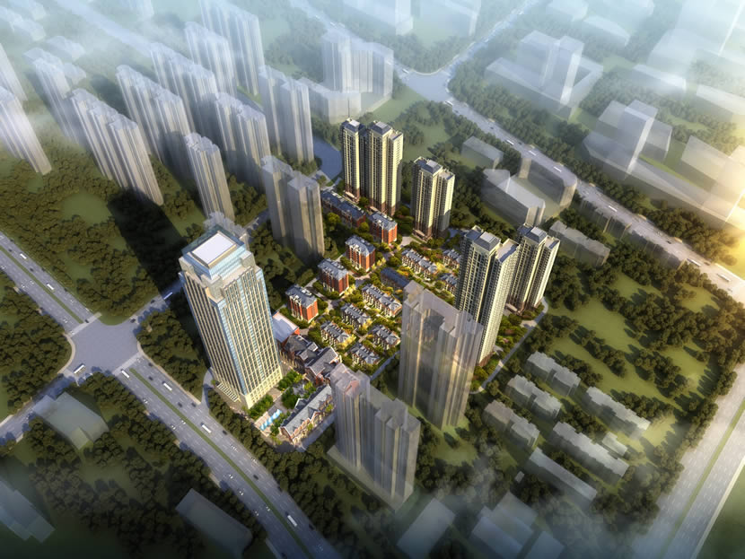 建筑形式:综合体(别墅+洋房+高层+写字楼+配套商业)